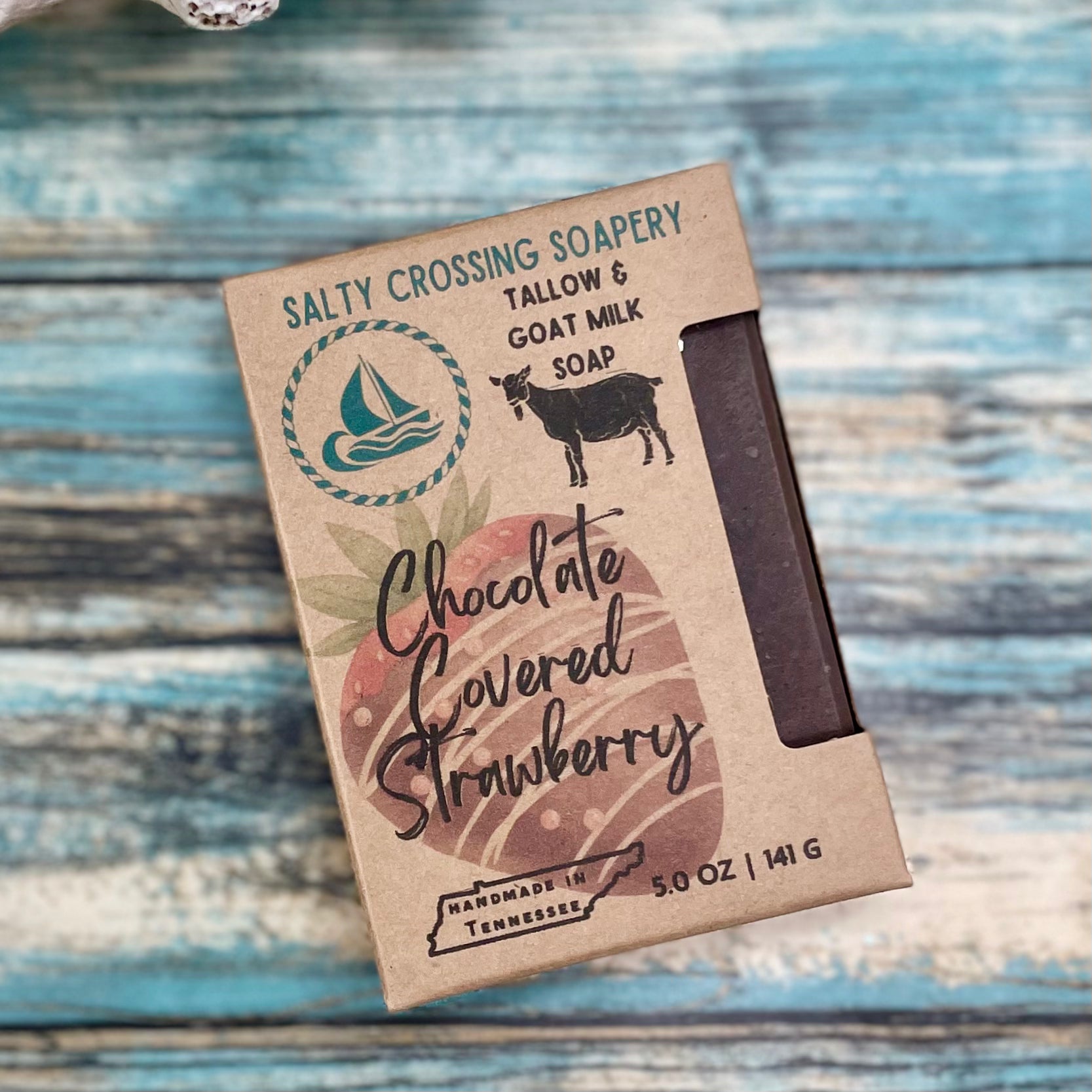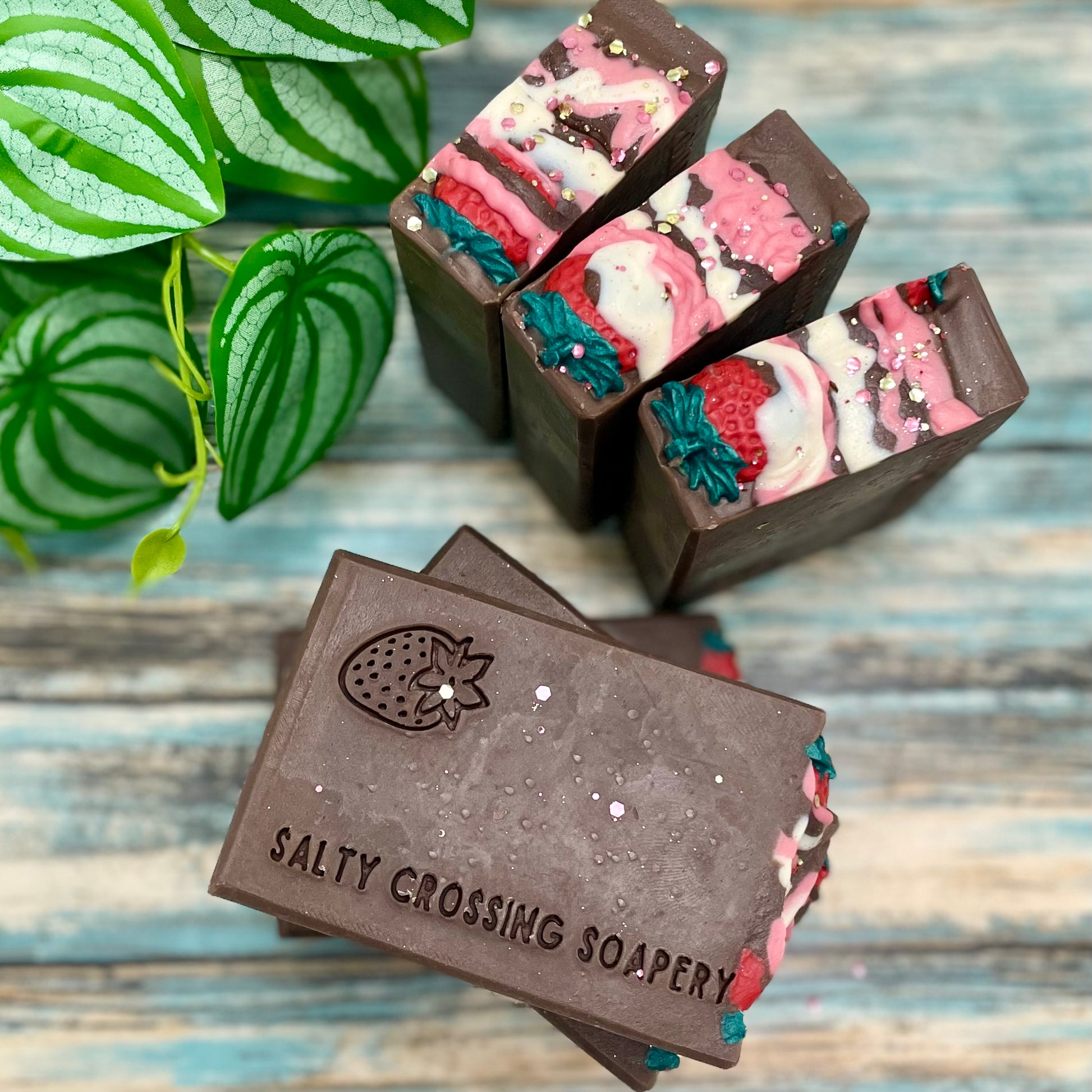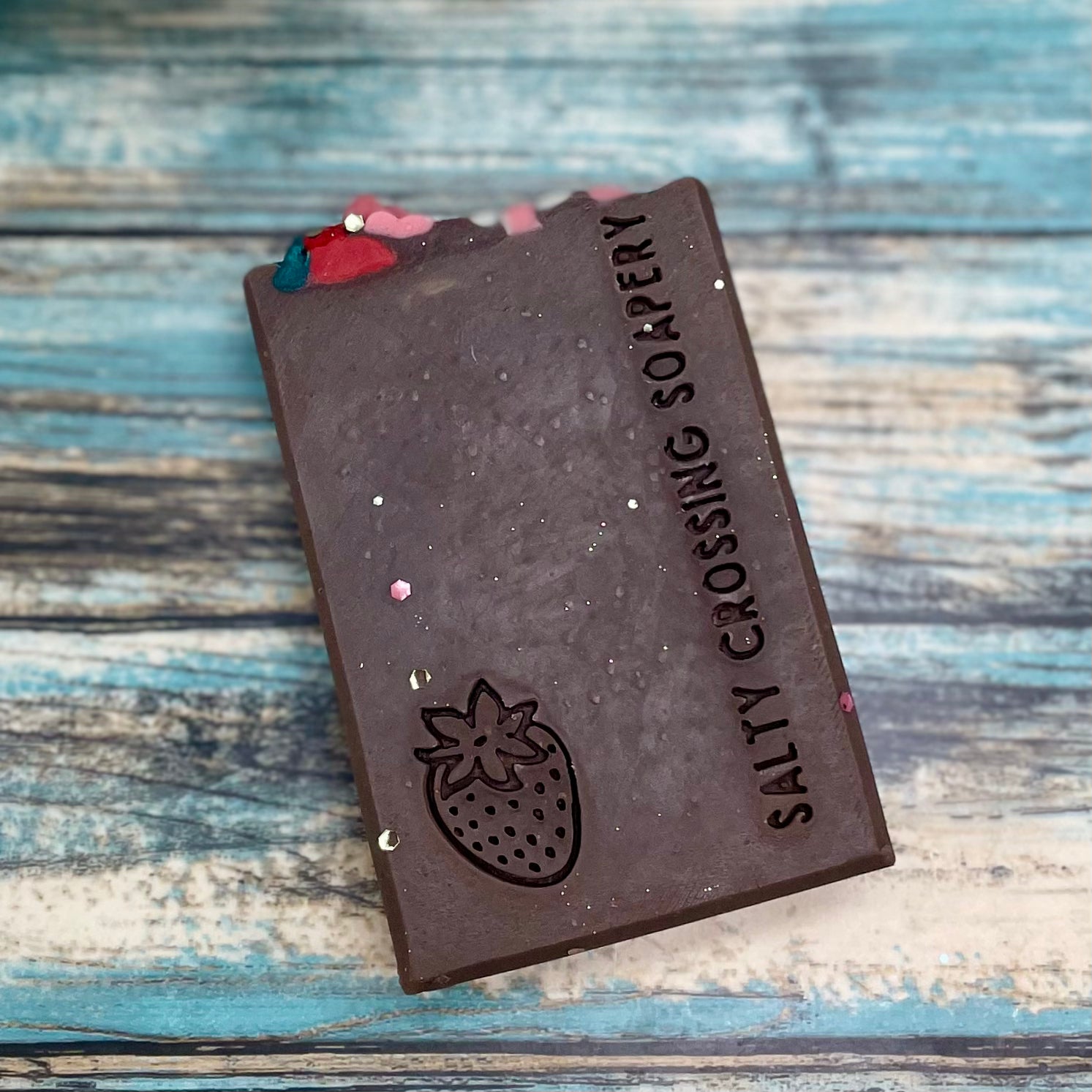Indulge in the luxurious experience of this Chocolate Covered Strawberries Soap, a handmade fancy artisan bar crafted with care. Immerse yourself in the rich and decadent aroma of chocolate and the sweet scent of ripe strawberries- a delightful sensorial experience.