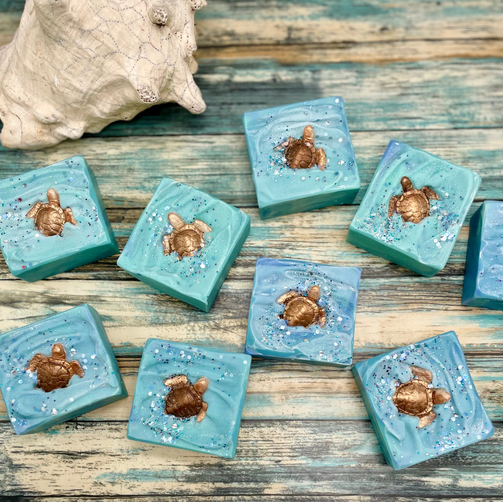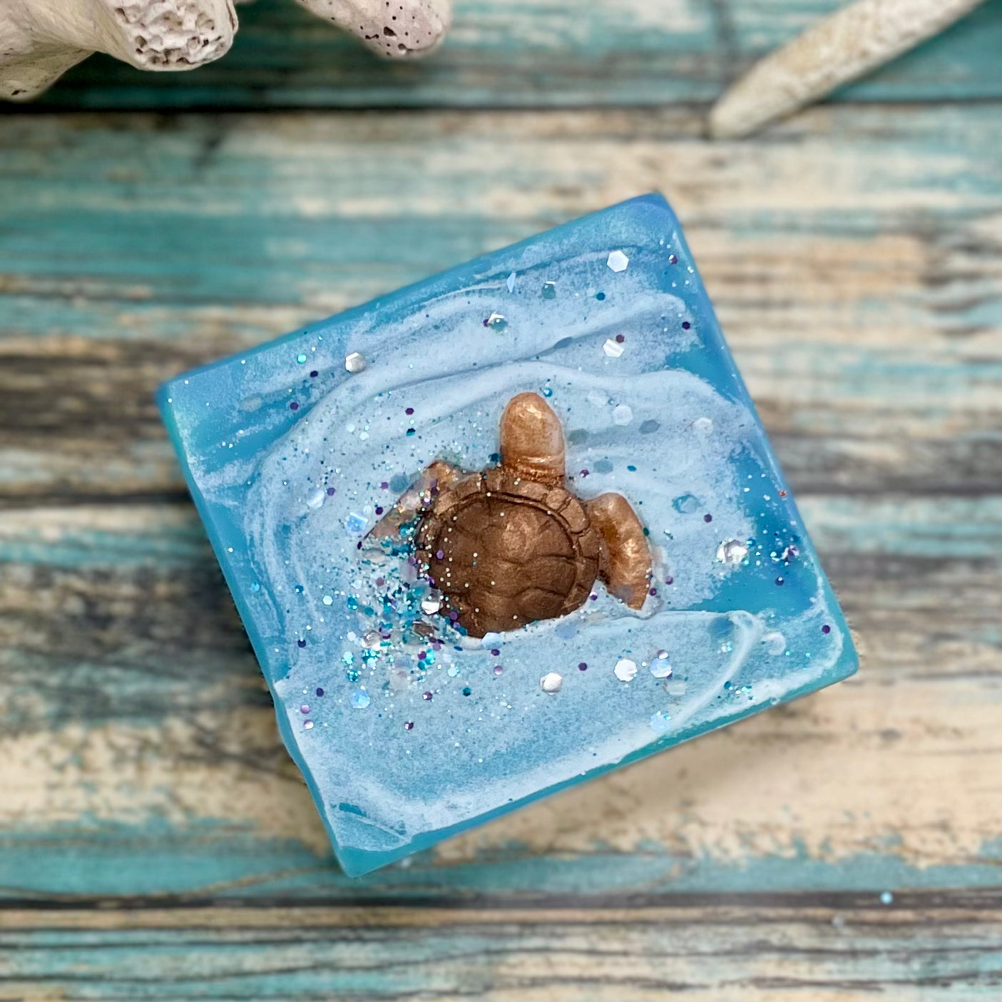 Meet Honu Happiness - a soap bar made to spark joy! Inspired by the sea turtle's calm, steady energy, this bar brings beachy vibes, playful sparkle, and a soothing cleanse to your daily routine. It's a reminder to slow down, smile, and carry a little ocean happiness with you.